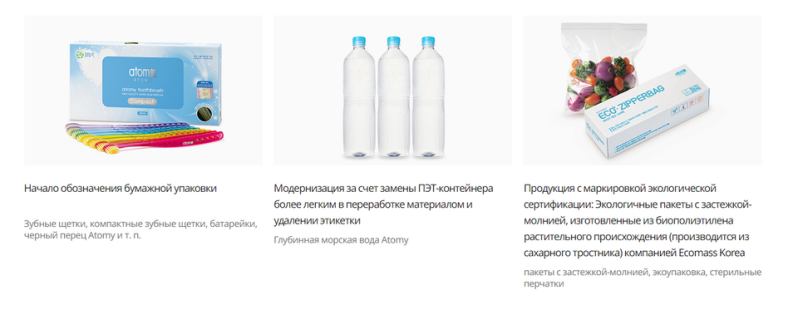 Согласно статьям 16 и 18 Обязывающего постановления о поощрении сбережения и вторичной переработки ресурсов Atomy участвует в следующих инициативах: