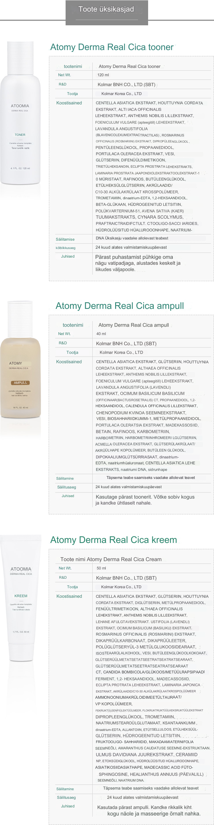 Atomy Derma Real Cica komplekt